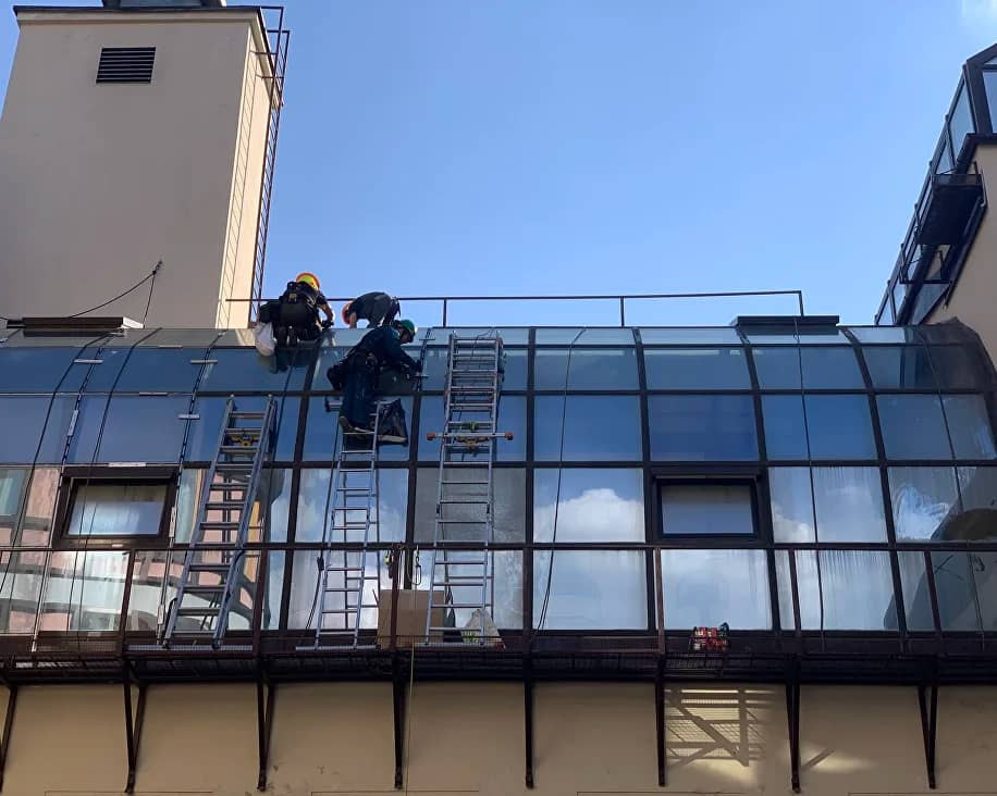 Выполняем работы по ремонту, обслуживанию и герметизации зимних садов. В работе используется подъемная техника, средства малой механизации. Ремонтные работы проводим на любой высоте, при необходимости задействуем альпинистское снаряжение.