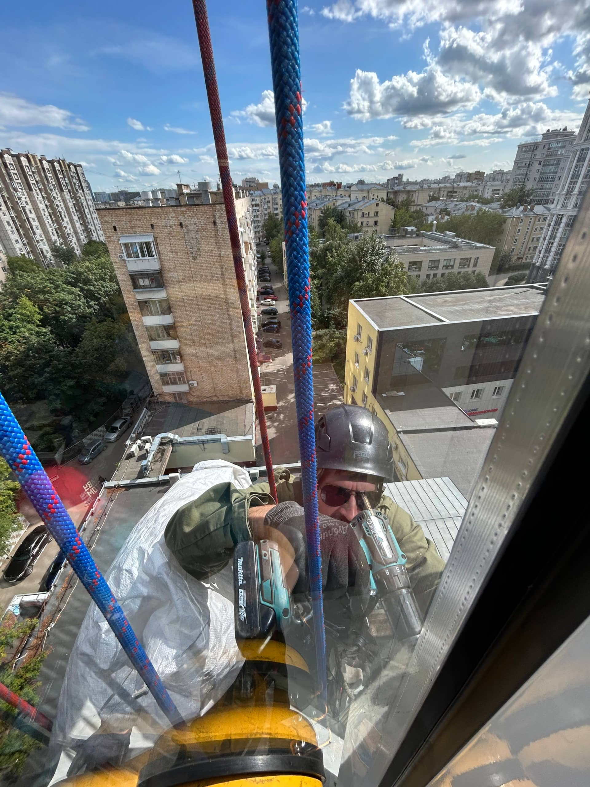 Выполнены работы по безопасной замене стеклопакета с привлечением промышленного альпиниста, обеспечивающего точный монтаж и сохранность конструкции.