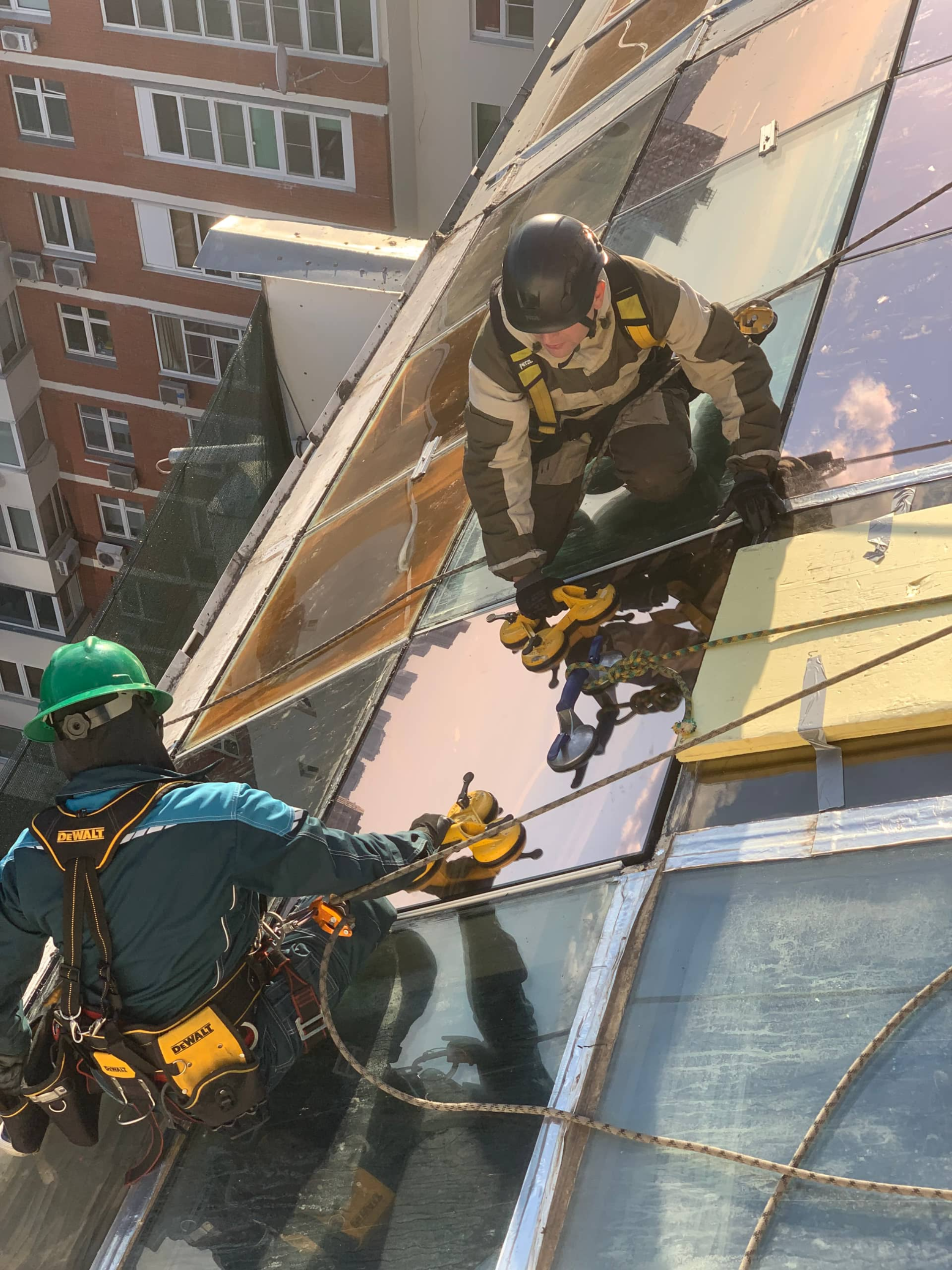 Замена стеклопакета на высоте
